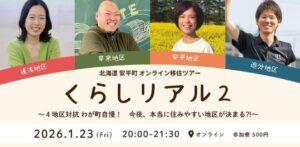 『くらしリアル2‼ ~4地区対抗 わが町自慢!今夜、本当に住みやすい地区が決まる?!~』と題してオンライン移住ツアーを開催します。